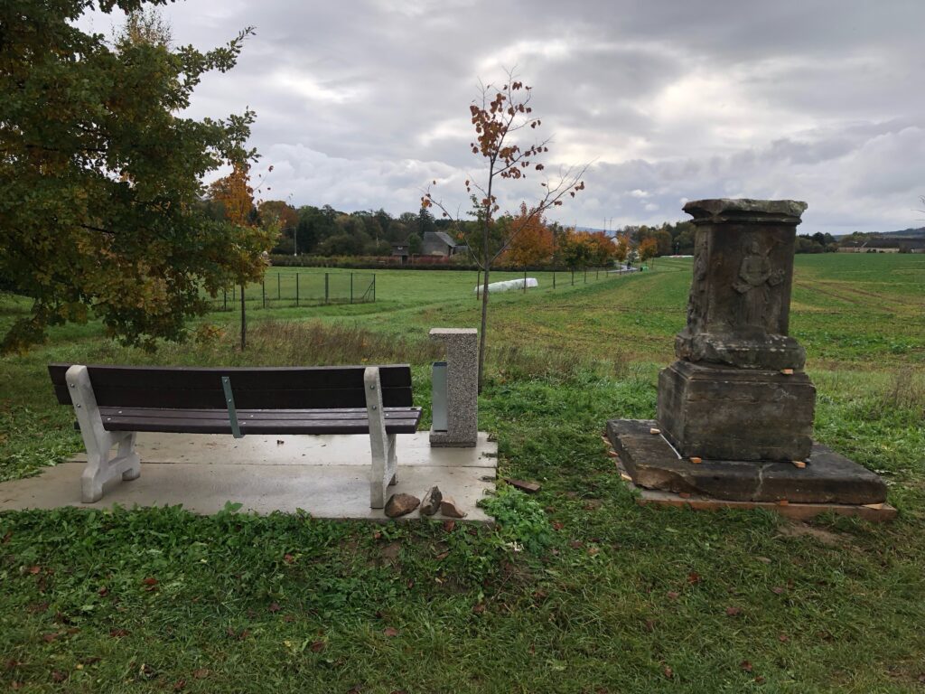 Lavička umístěná v roce loňském, socha přemístěná letos a komplexní renovace do konce listopadu 2025.
