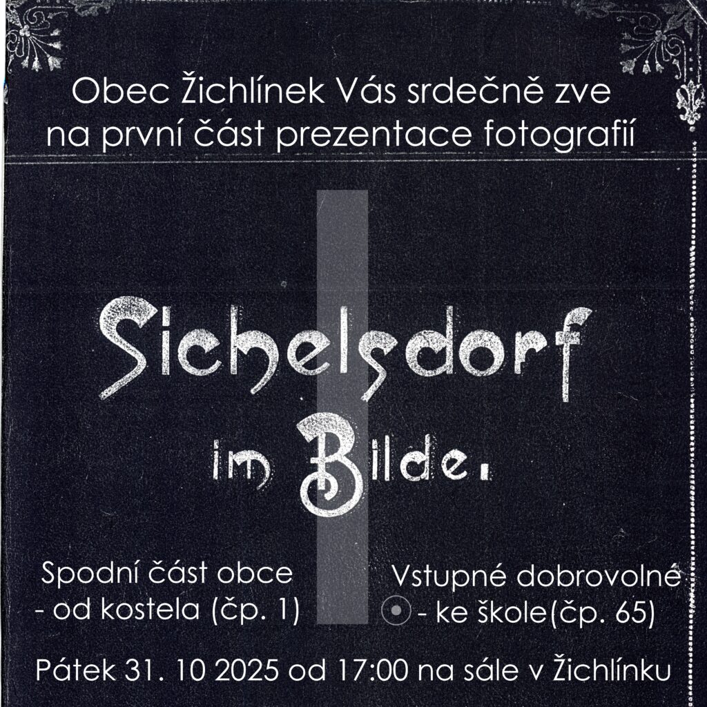 Obec Žichlínek Vás srdečně zve na první část prezentace fotografií Sichelsdorf im Bilde I./ Žichlínek v obrazech I. s podtitulem „Od kostela ke škole“. Promítání se uskuteční v pátek 31. 10. 2025 od 17:00 na sále v Žichlínku.