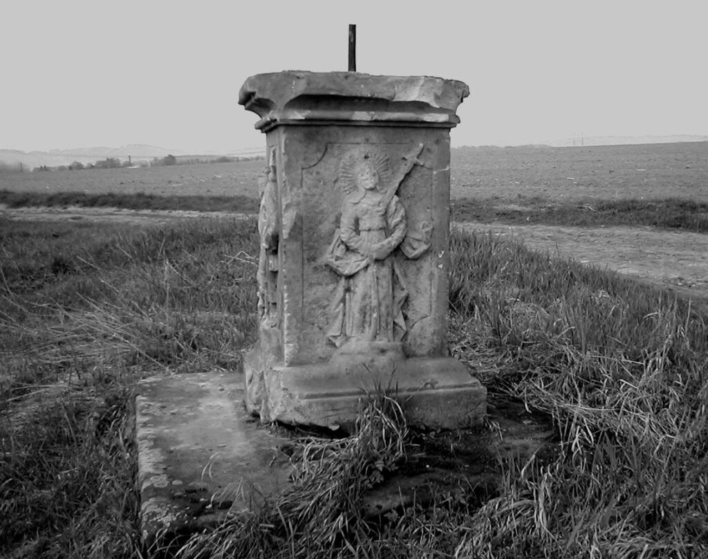 Na první fotografii je vše co zbylo z původní sochy, další dvě fotografie ukazují dnešní stav. Zároveň bychom rádi poděkovali Město Lanškroun za darování spodní části sochy, pískovcového kvádru jehož výroba by renovaci značně prodražila.
