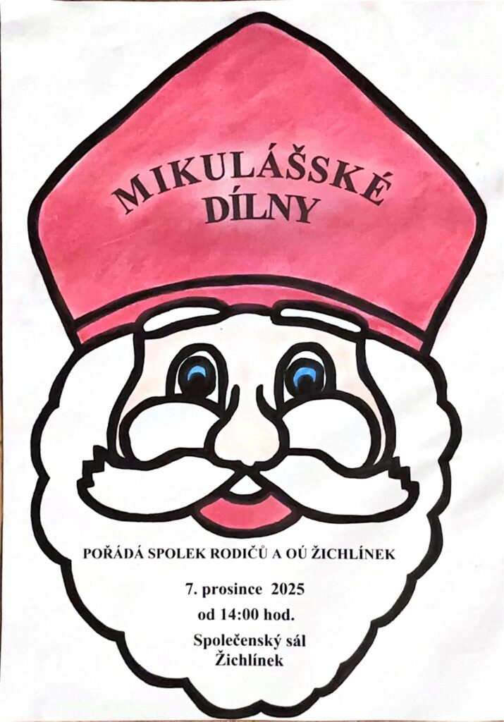Spolek rodičů a OÚ Žichlínek Vás srdečně zve na tradiční MIKULÁŠSKÉ DÍLNY. V neděli 7. prosince 2025 od 14:00, společenský sál Žichlínek.